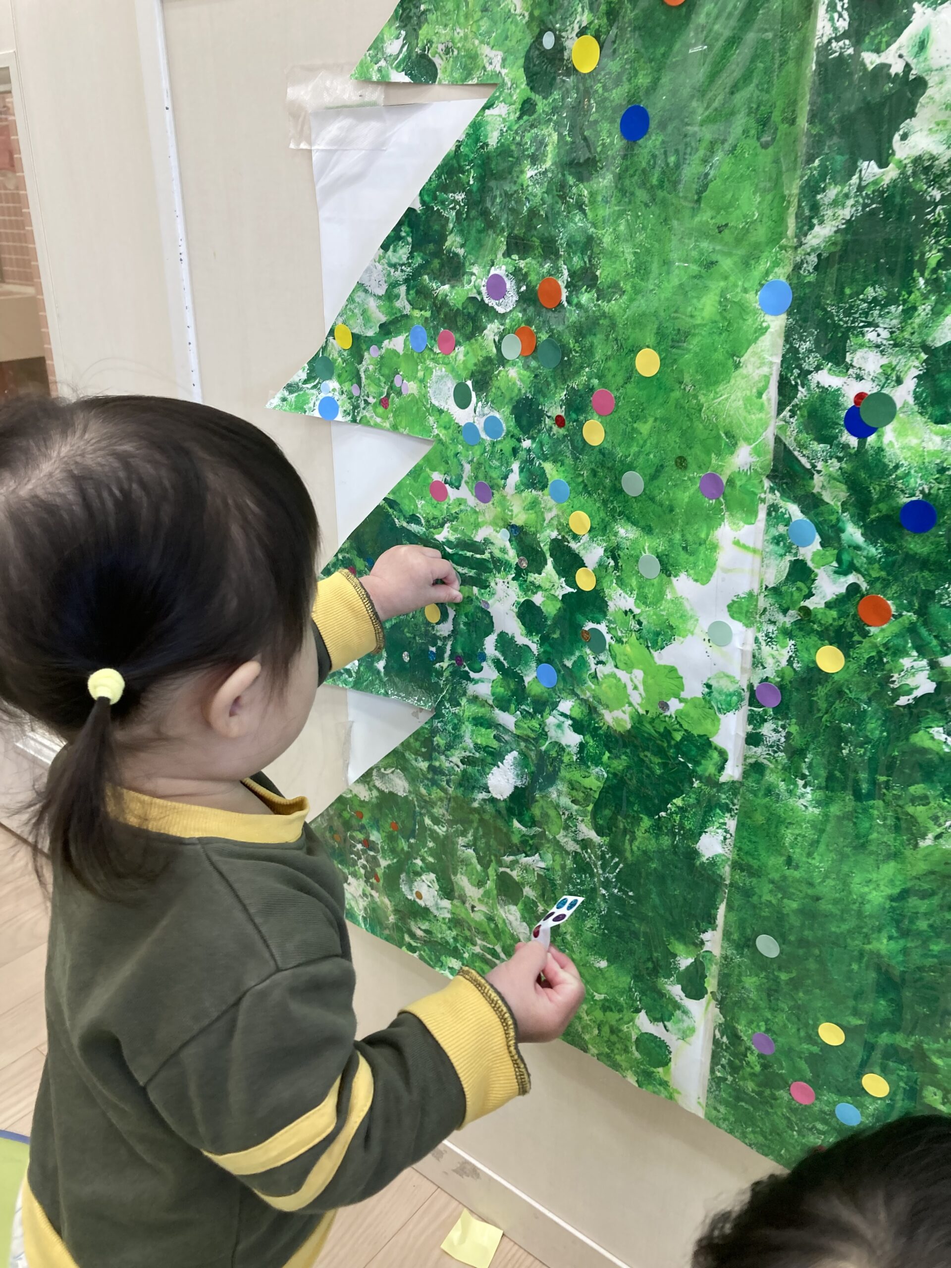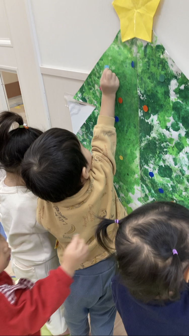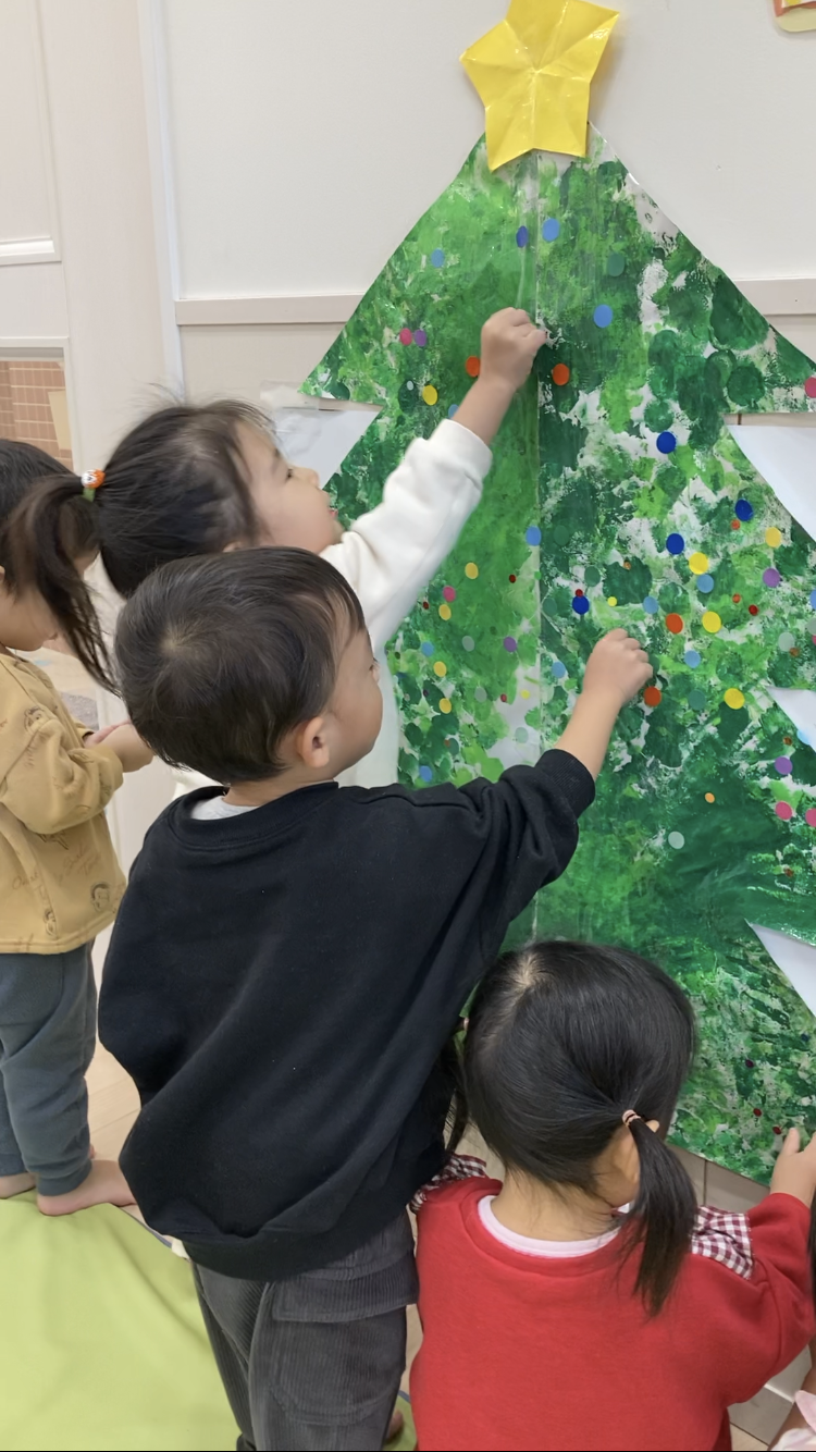 TOP > アーカイブ : 2025年 12月 ブログ 「クリスマスまだかな★」 絵の具を使って、クリスマスツリーを作ったよ! タンポ筆でトントントン♪ 仕上げは手のひらで😄 しっかり色がついてきた✨ できたツリーにシールを貼って飾り付けをしたよ!! 「高い所も任せて!!」 かわいくなってきたね!! 完成~! 素敵なツリーができました🎄 2025.12.05