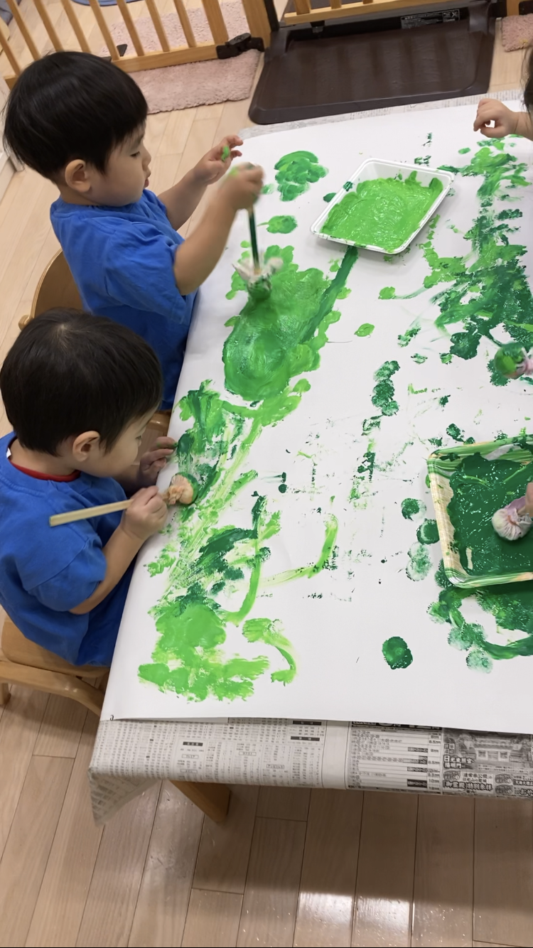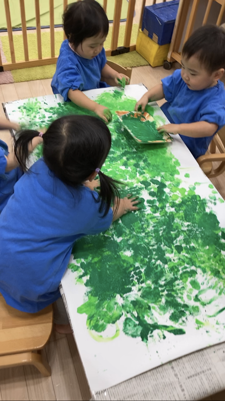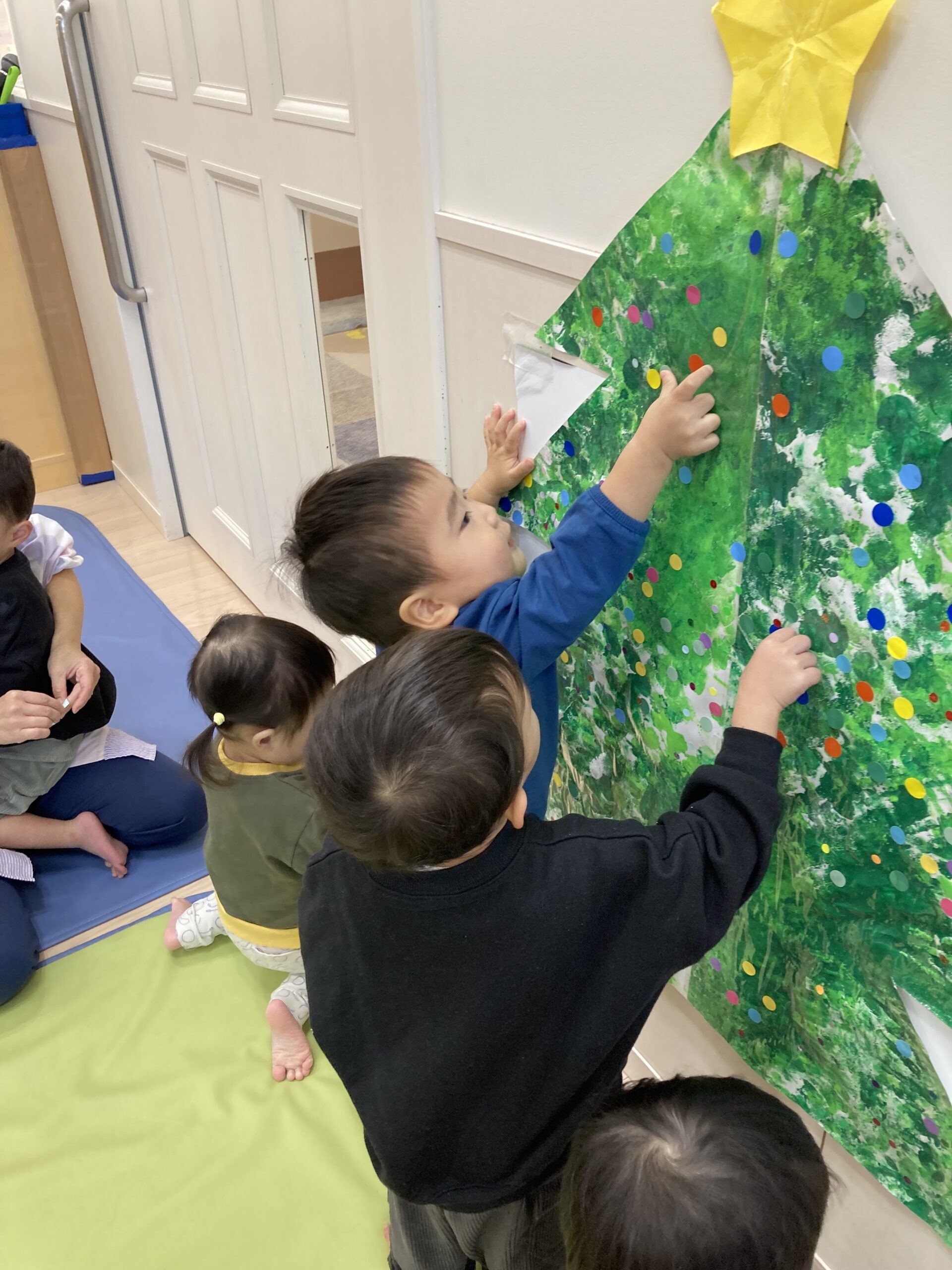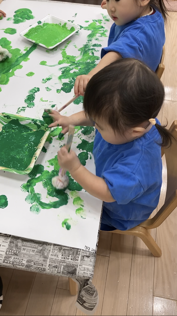 TOP > アーカイブ : 2025年 12月 ブログ 「クリスマスまだかな★」 絵の具を使って、クリスマスツリーを作ったよ! タンポ筆でトントントン♪ 仕上げは手のひらで😄 しっかり色がついてきた✨ できたツリーにシールを貼って飾り付けをしたよ!! 「高い所も任せて!!」 かわいくなってきたね!! 完成~! 素敵なツリーができました🎄 2025.12.05