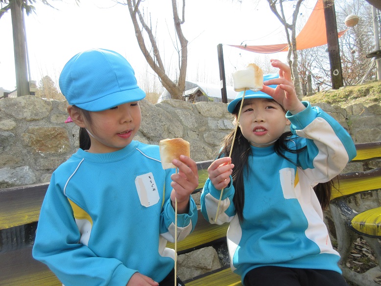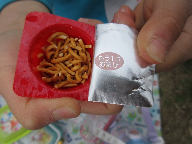 お弁当、みんなで詰めたお菓子、先生たちが作ったじゃがバターをいただきます😋🍭🥔