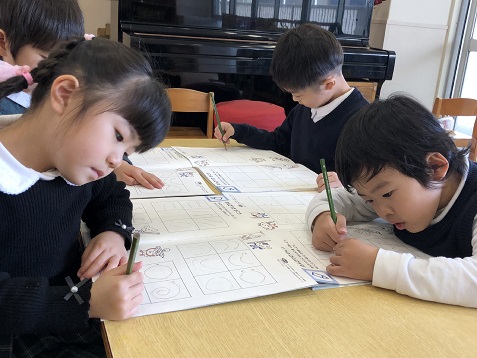 TOP > せんのワークをしたよ!(年中組) ブログ せんのワークをしたよ!(年中組) 1学期からコツコツ取り組んできた「せんのワーク」 今まではマーカーで書いてきましたが、今回はなんと・・・えんぴつで‼ ななめやカーブなどちょっと難しい線にもチャレンジ✨ ゆっくり丁寧に取り組むことができた子どもたちです。 2026.01.15