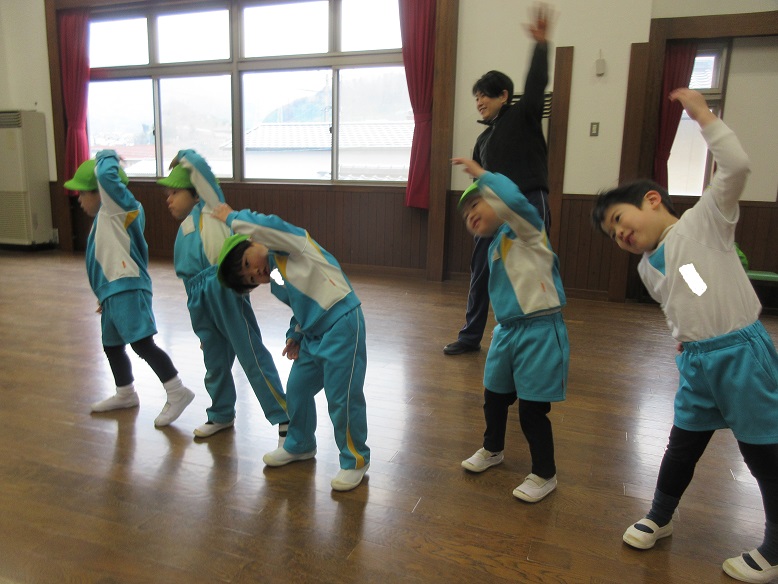 「いっちに!さーん‼」と元気な掛け声で準備体操もバッチリ😄