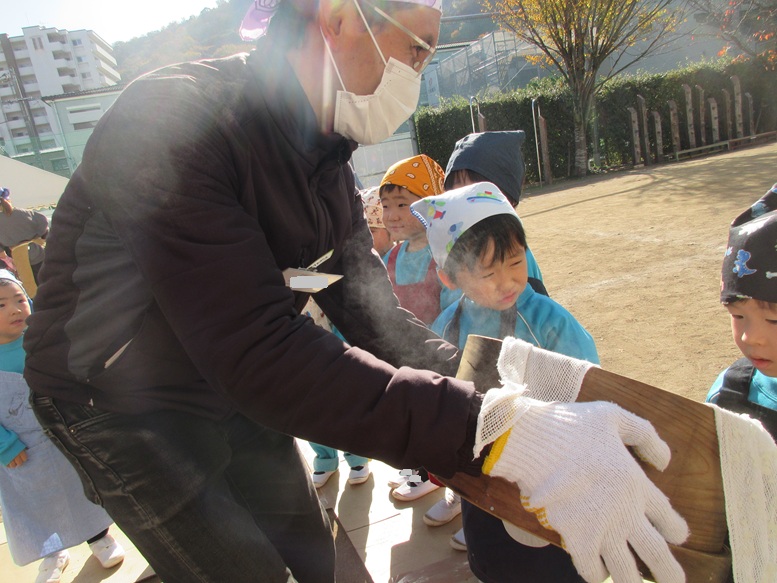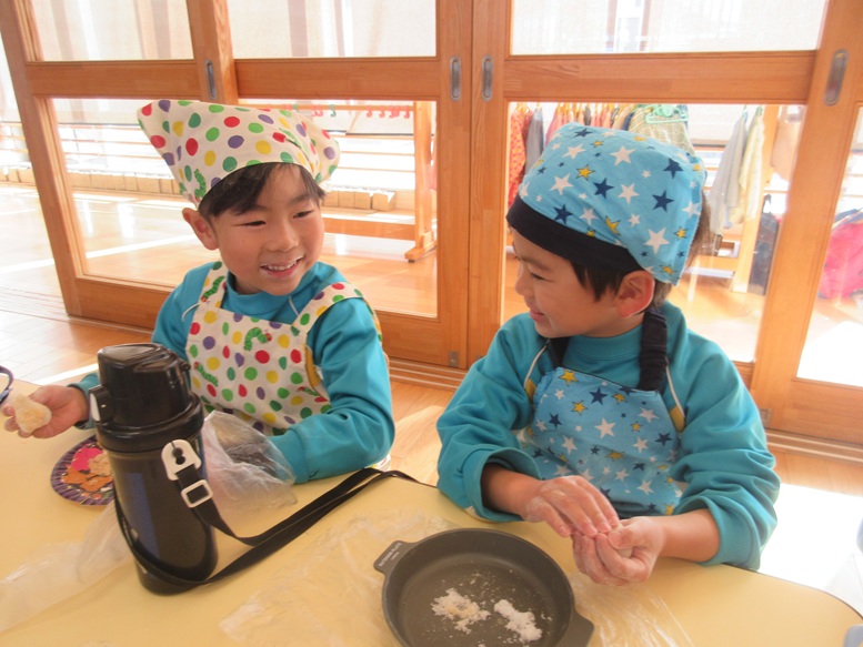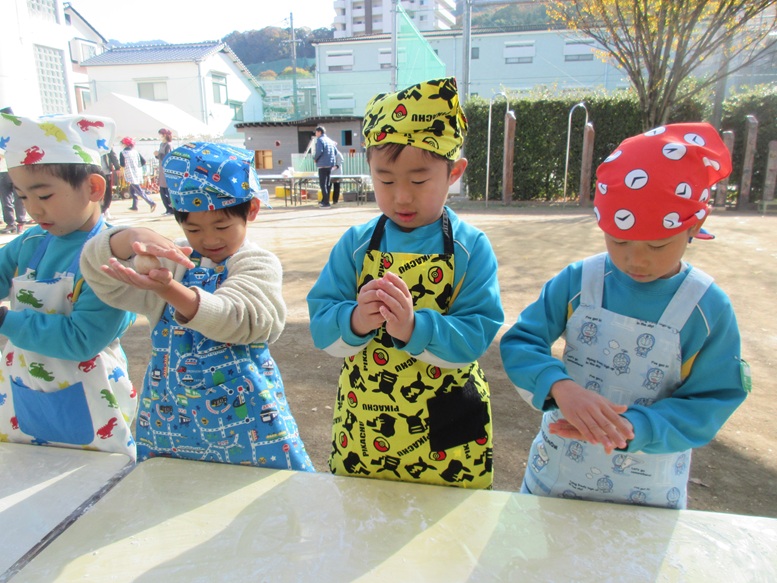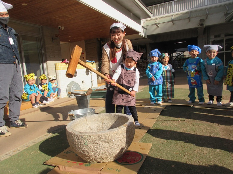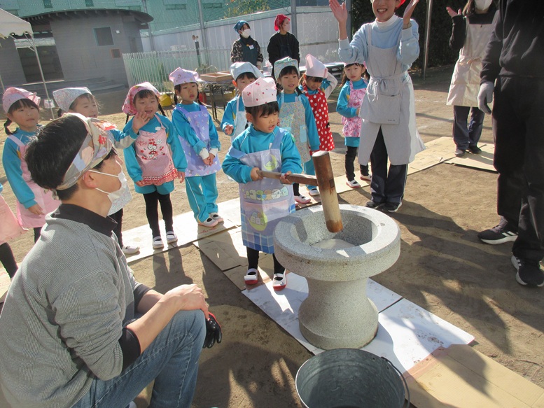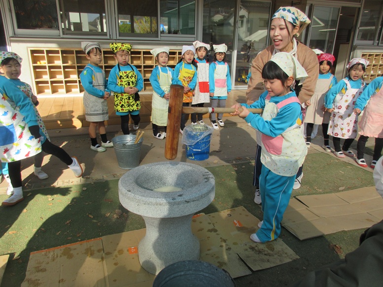 TOP > もちつき🍡 ブログ もちつき🍡 待ちにまったもちつき!! もち米の匂いをかいで… 「よいしょー、よいしょー!」と力強くついて コネコネ…まぁるくまぁるく丸めて 「いただきまーす💕」 みんなで食べると美味しいね😊 2025.12.09