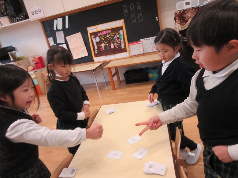 TOP > カルタあそび!!(年長組) ブログ カルタあそび!!(年長組) めざましあそびの中に入っているカルタあそびをしました😄 先生の声をよーく聞いて・・・ はいっ!!! ひらがなも読めるようになり、楽しい声がたくさん聞かれました🌟 お正月ならではのあそび・・・ またみんなであそぼうね💕 2026.01.09