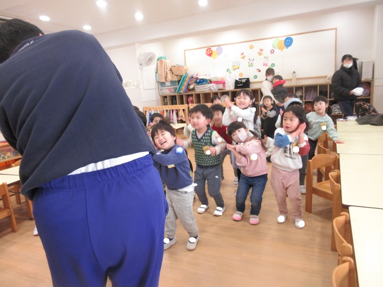 TOP > コスモの先生と…🌟 (満3歳児) ブログ コスモの先生と…🌟 (満3歳児) 朝の時間にコスモの先生と体操!! 楽しくて、終始ニコニコな子どもたち😊 「今日も来る?」とコスモの先生が大好きになりました💕 2026.01.27