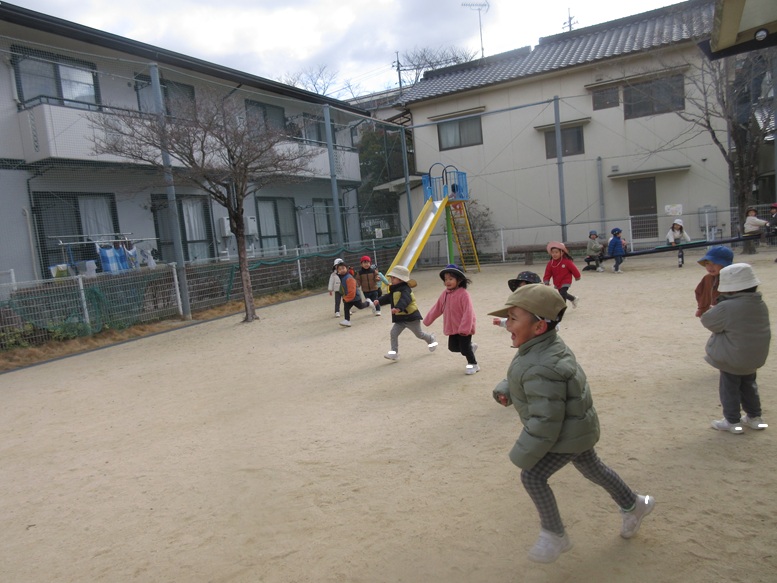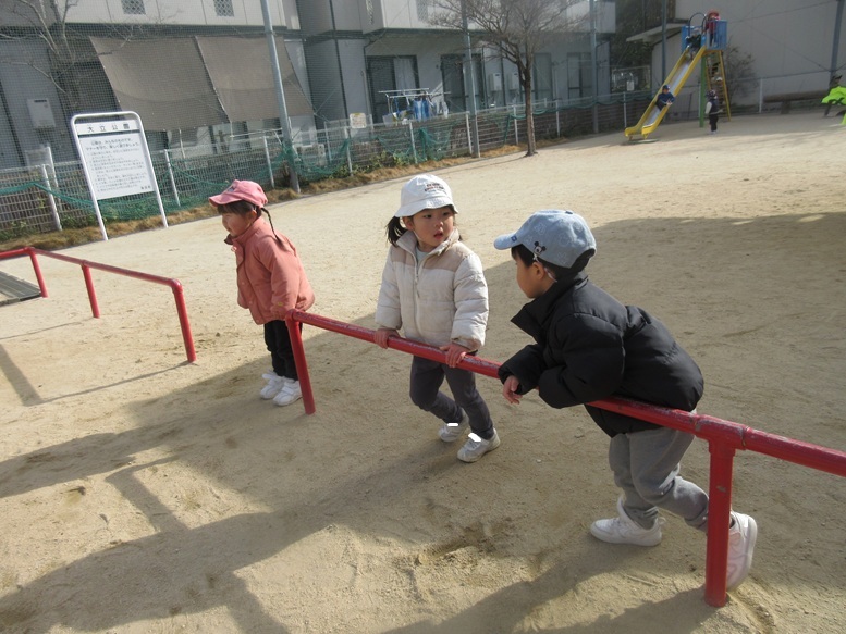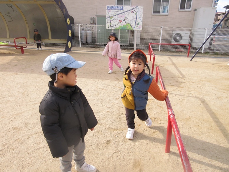 おいかけっこをしたり、すべり台やブランコ、シーソーで遊んだり