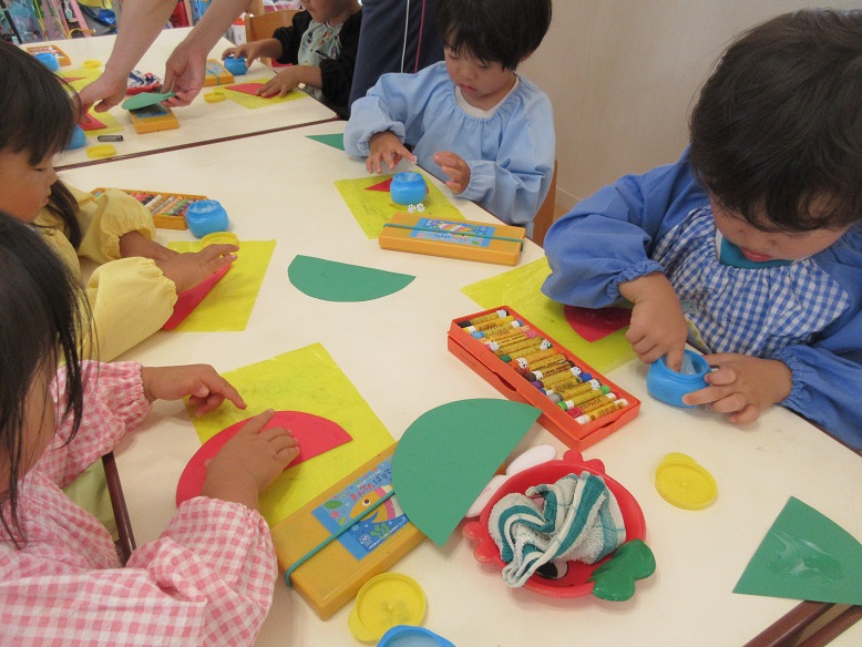 TOP > 短冊づくり🍉(年少組) ブログ 短冊づくり🍉(年少組) もうすぐ七夕の日🌙 年少組では、すいかの七夕飾りを作りました。 すいかの七夕飾りには、子どもたちの成長をすいかのツルや実に例え 「すくすく元気に育つように」という願いが込められています😊💕 まずはパスで種を描き のりで貼ったら完成🌟 笹に飾る日が楽しみだね🌈 2025.06.26