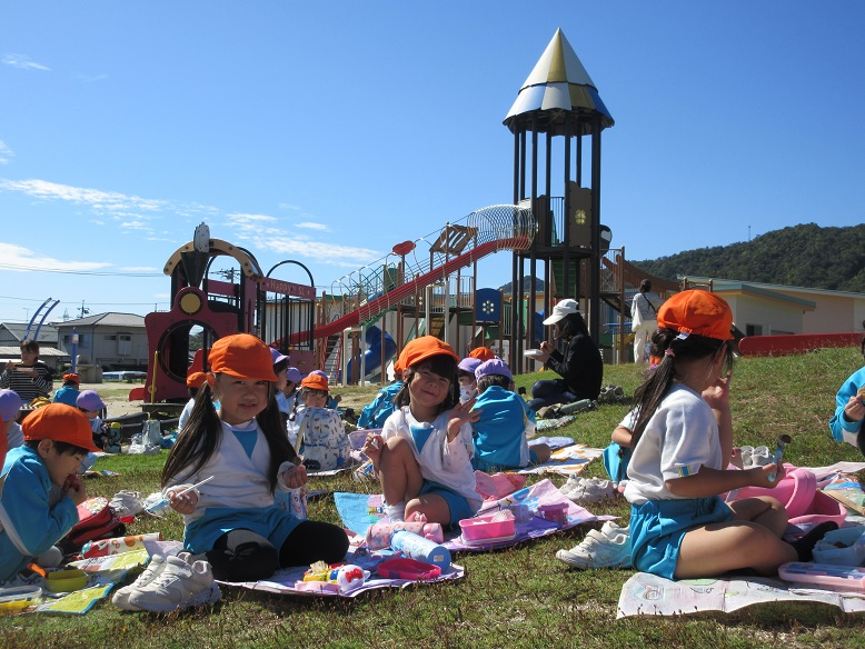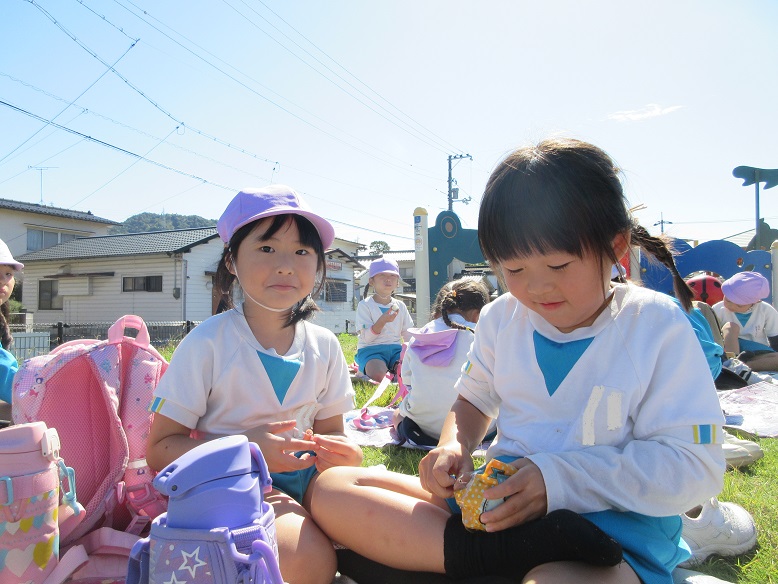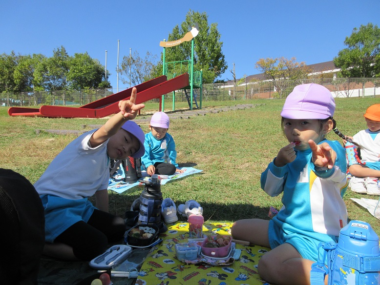 青空の下でみんなで食べるお弁当は一段とおいしかったね✨