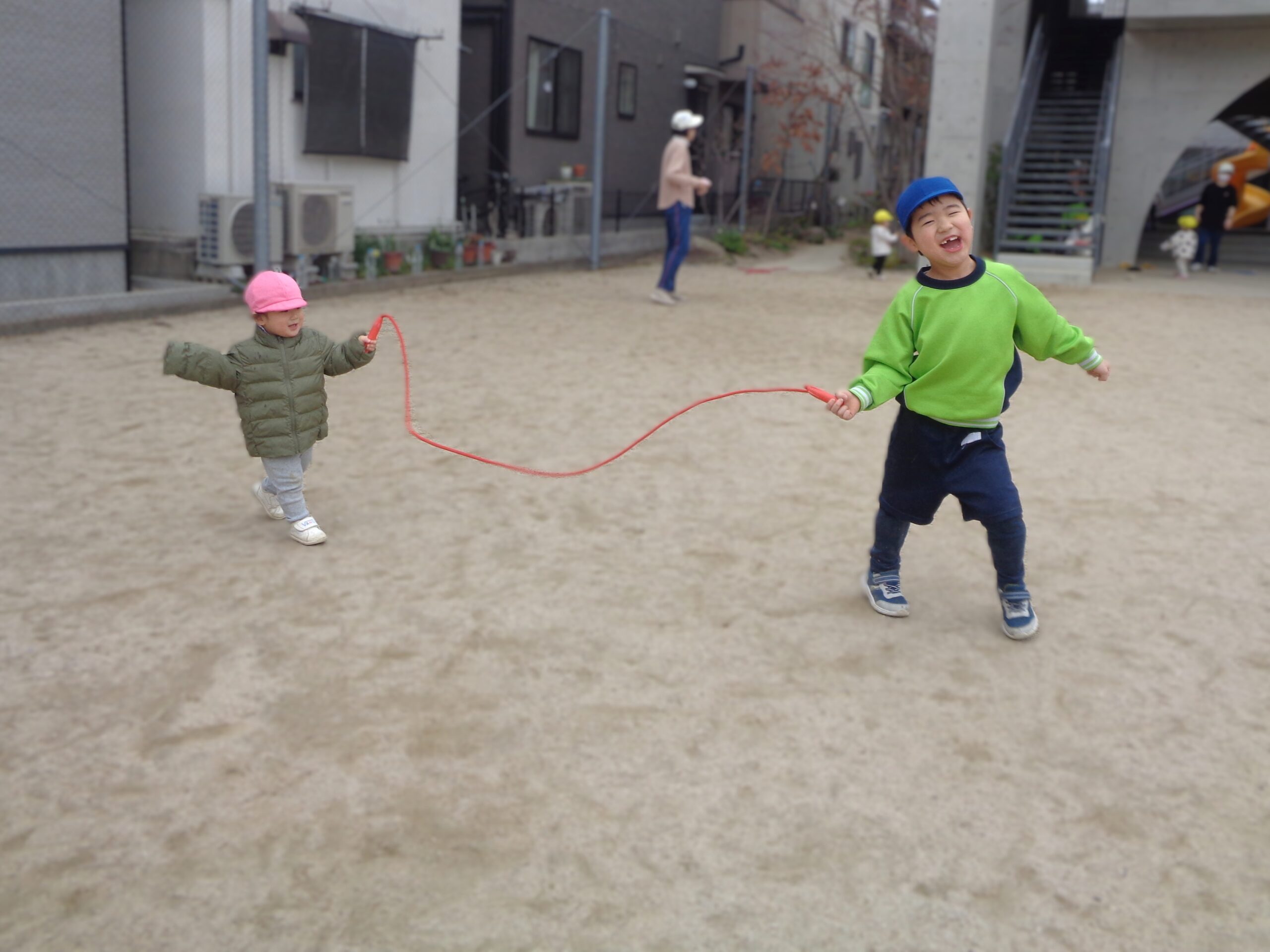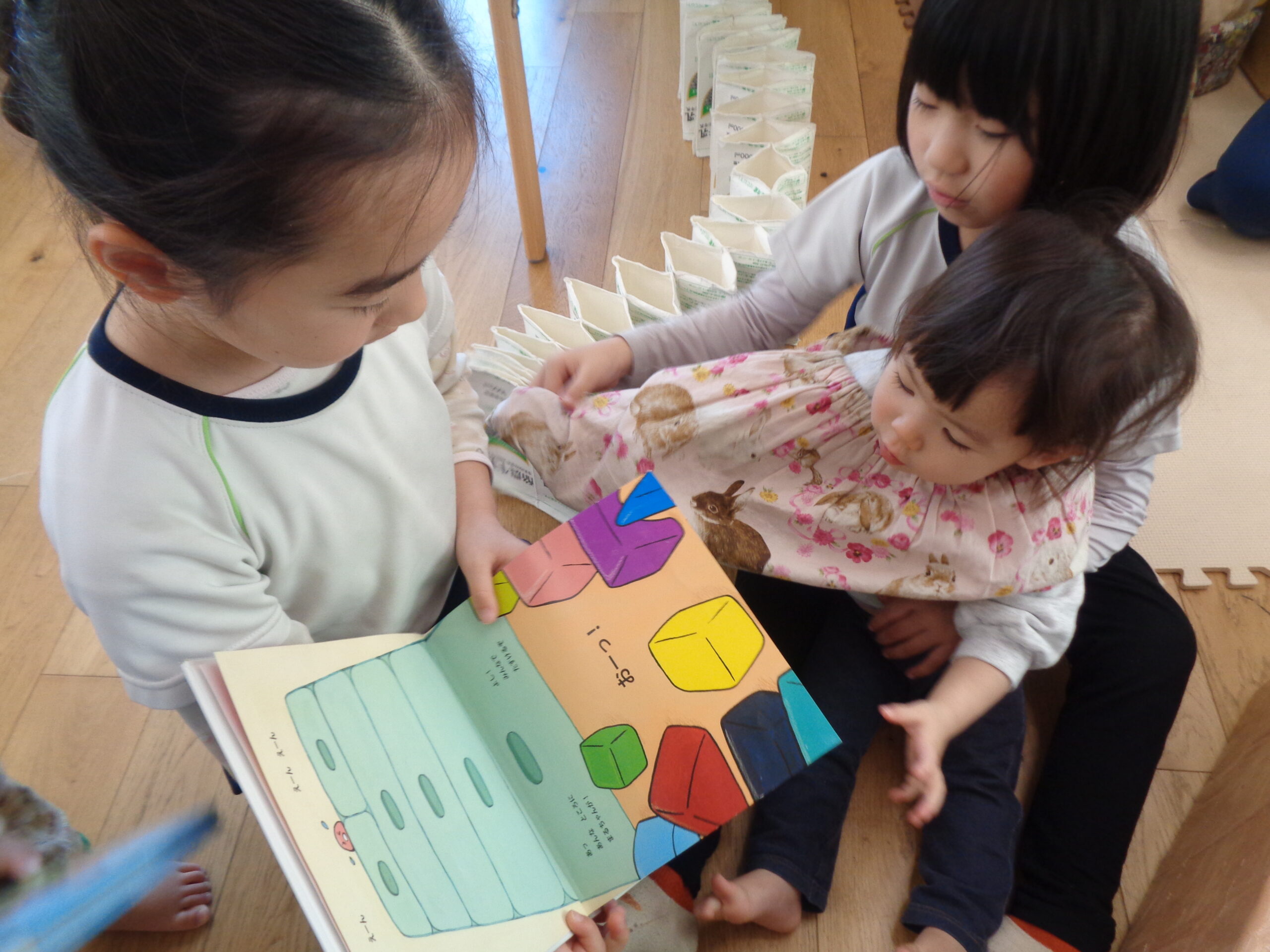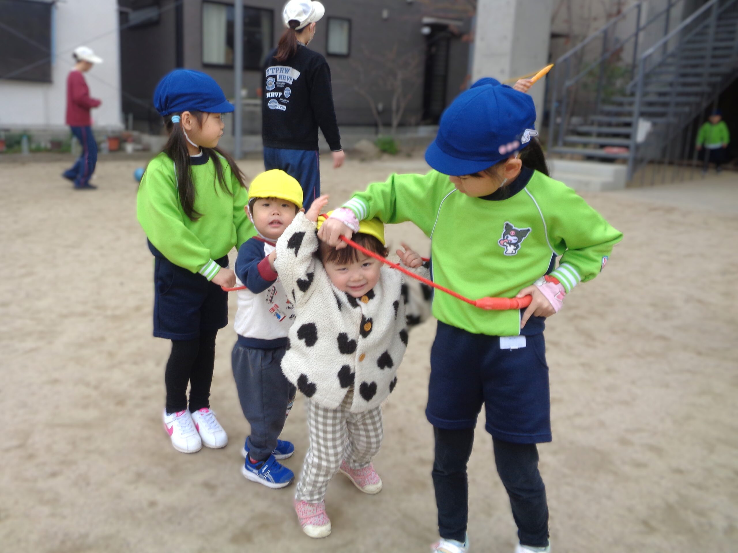 TOP > はりきるふくろう組! ブログ はりきるふくろう組! 「たんぽぽ組が遊びに来るぞ‼」 ということで、みんなが興味を持ってくれそうなおもちゃや絵本を用意したり、セッティングしたりやらで慌ただしいふくろう組 たんぽぽ組がやってくると、優しく手を引き一緒に遊んだり、絵本を読んであげたり💕 とっても頼りになりました👏 外でも出会うとこの通り! 本当に優しくお世話好きなふくろう組でした♪ 2026.03.06