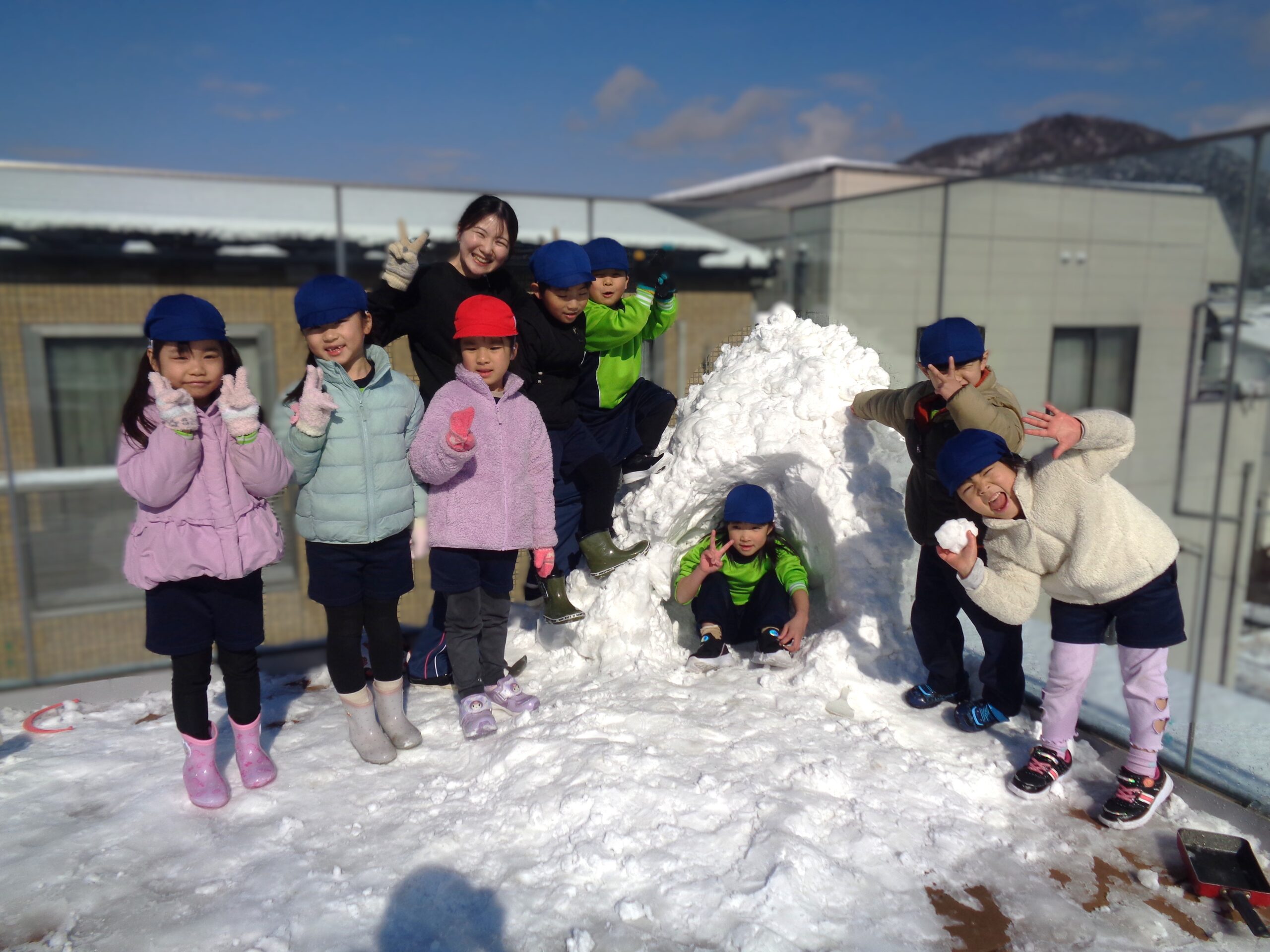 登園した子どもたちは園でおもいっきり雪あそびを楽しみました♪
