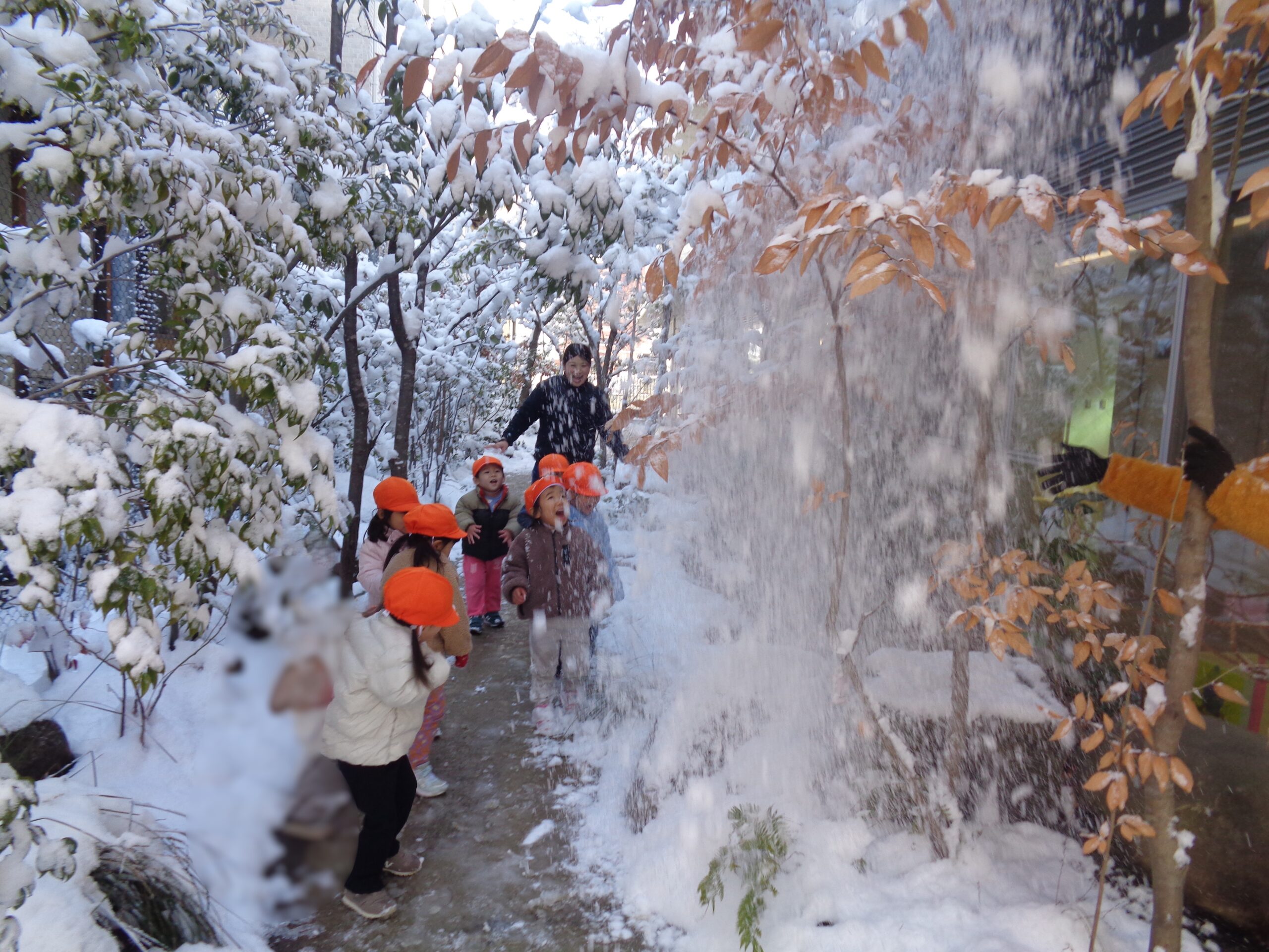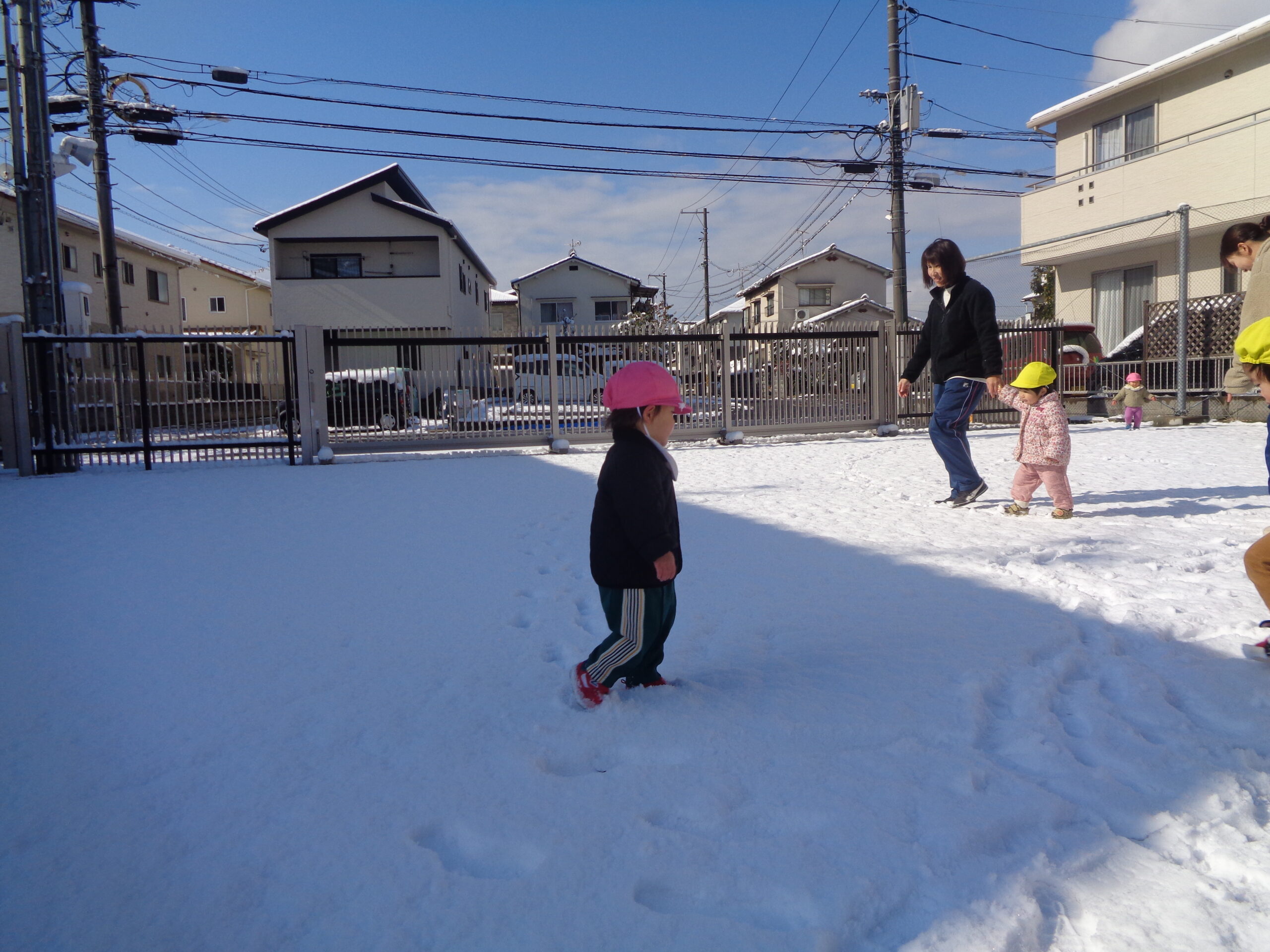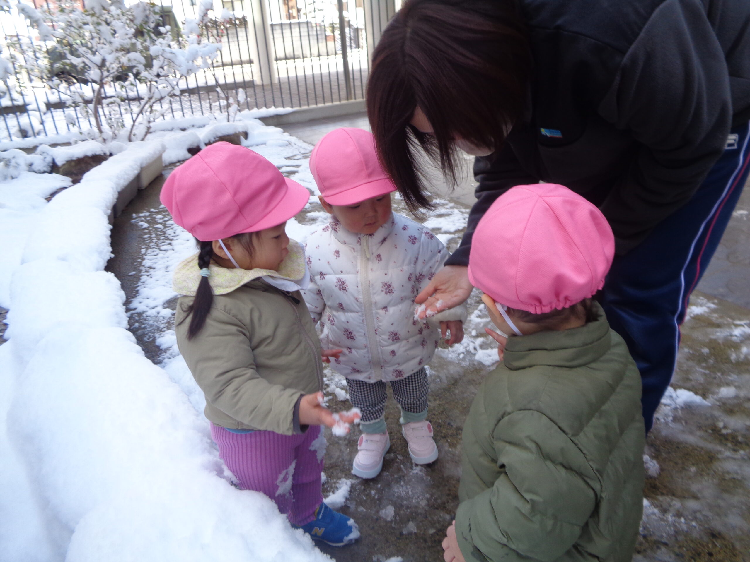 たんぽぽ組では雪の冷たさに驚く子もいましたが