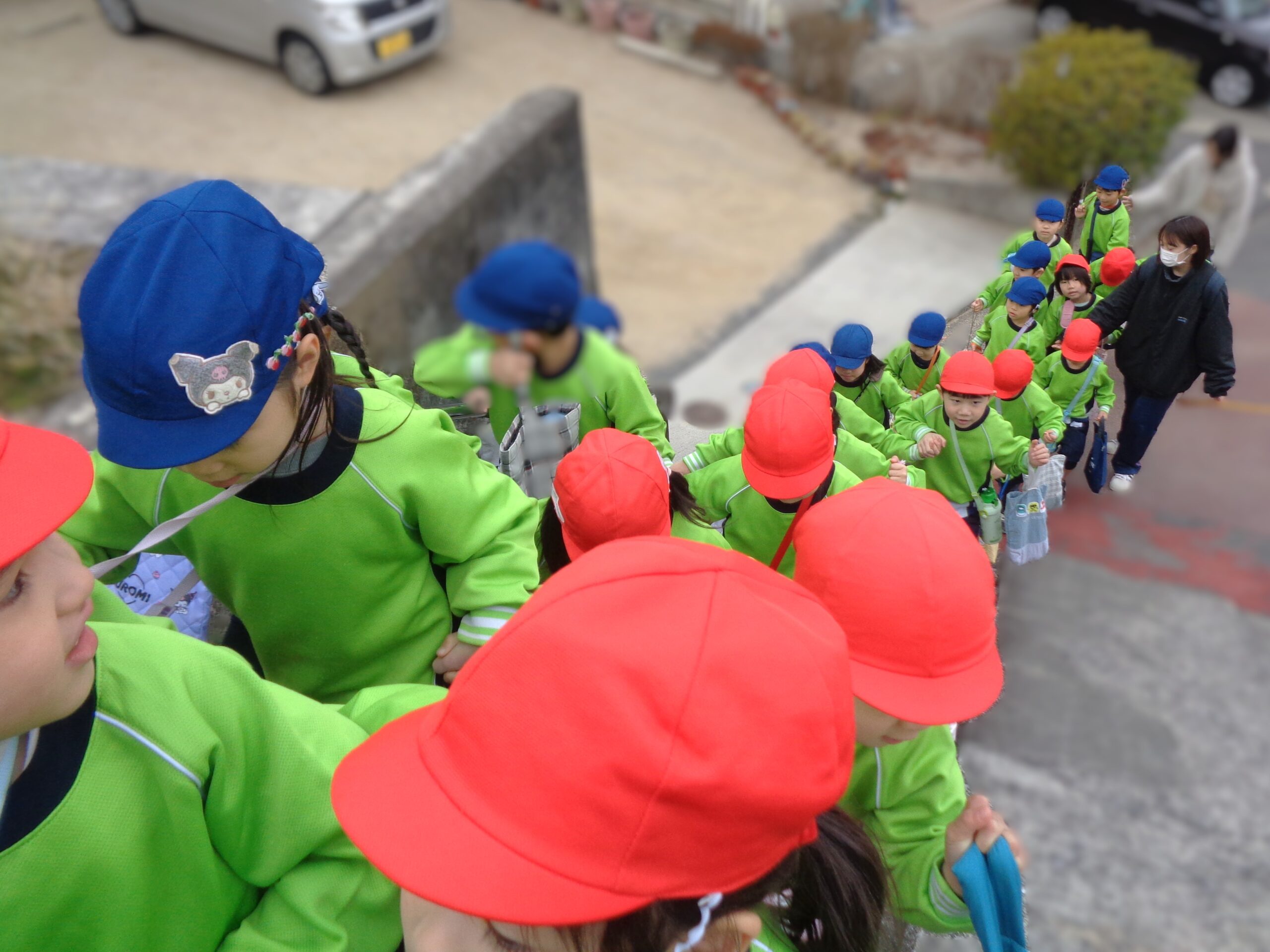 小学校までの道は急な階段や坂道で、「ふ~」と足を踏ん張りながら頑張って歩きました!