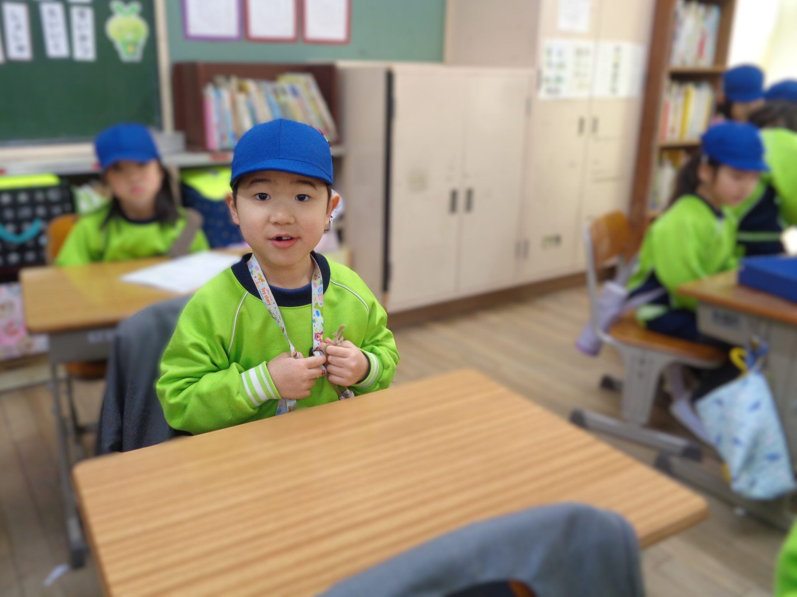 特別に小学校の校舎を案内していただき、教室に入ったり椅子に座らせてもらったりして気分は小学生♪