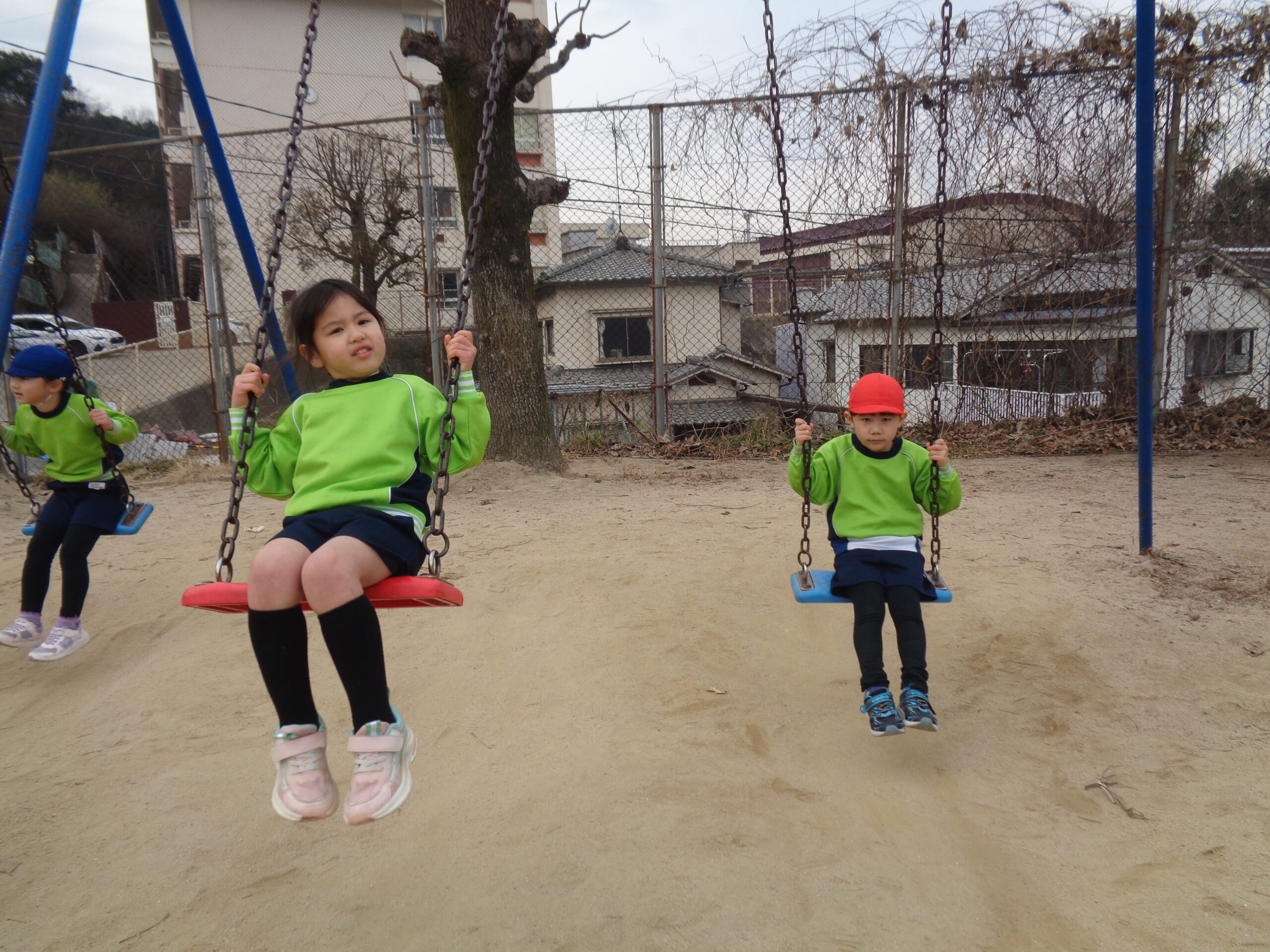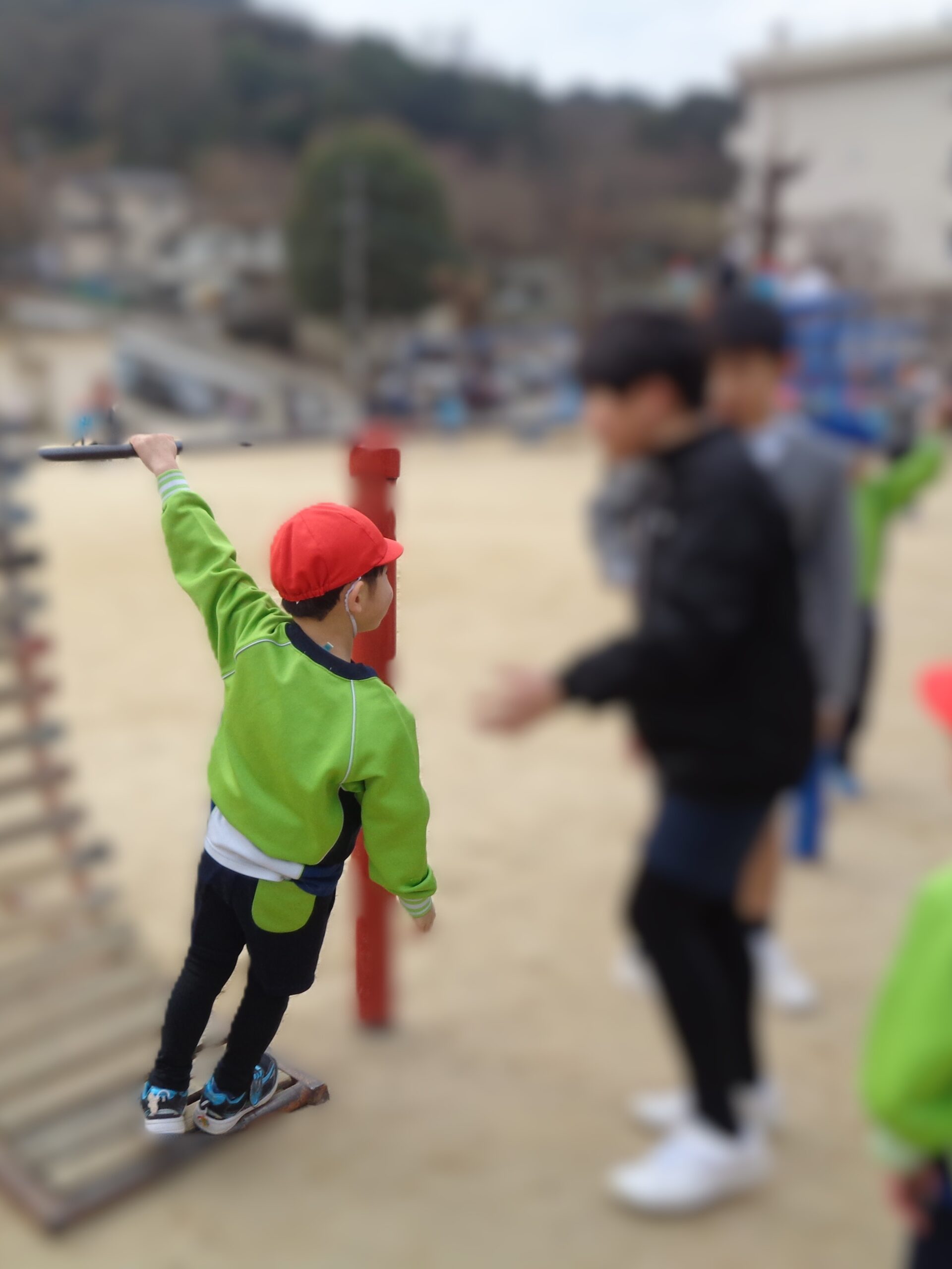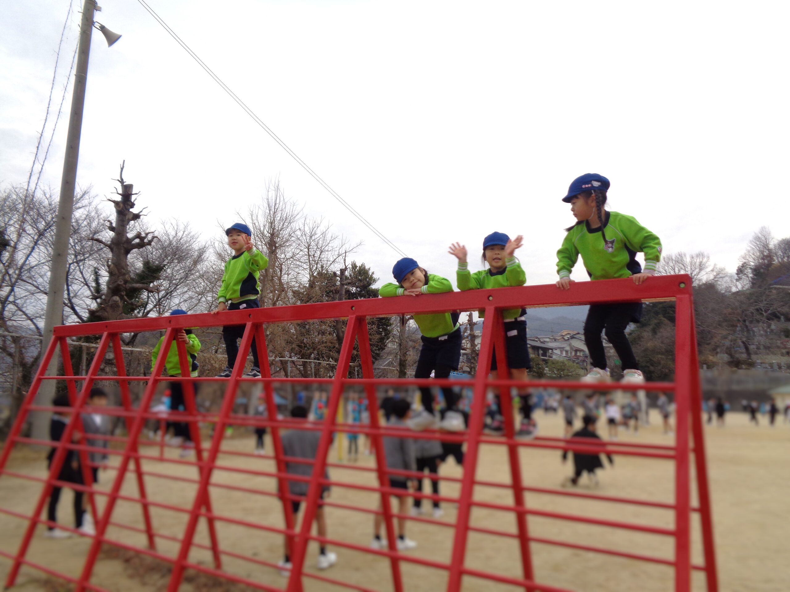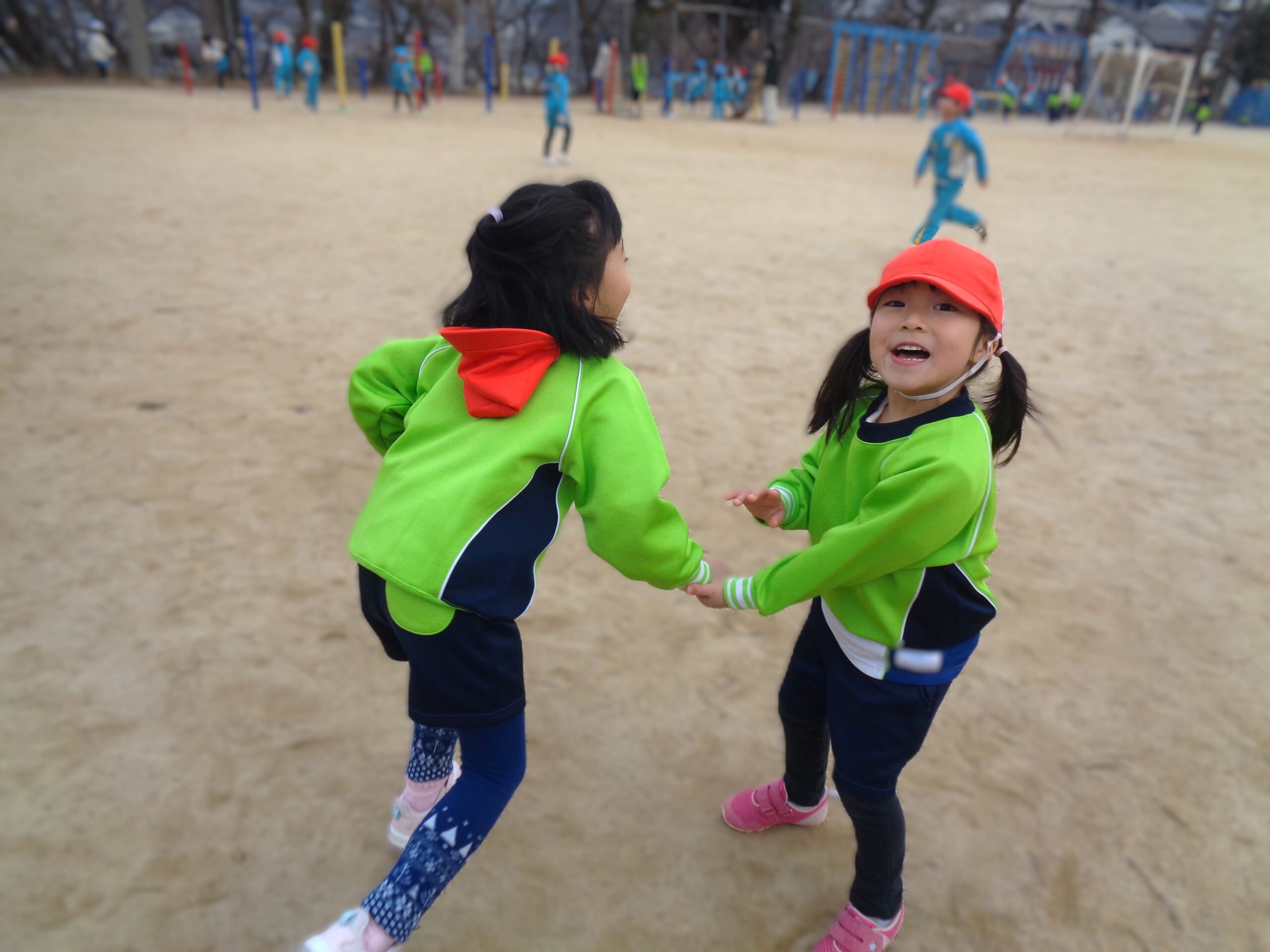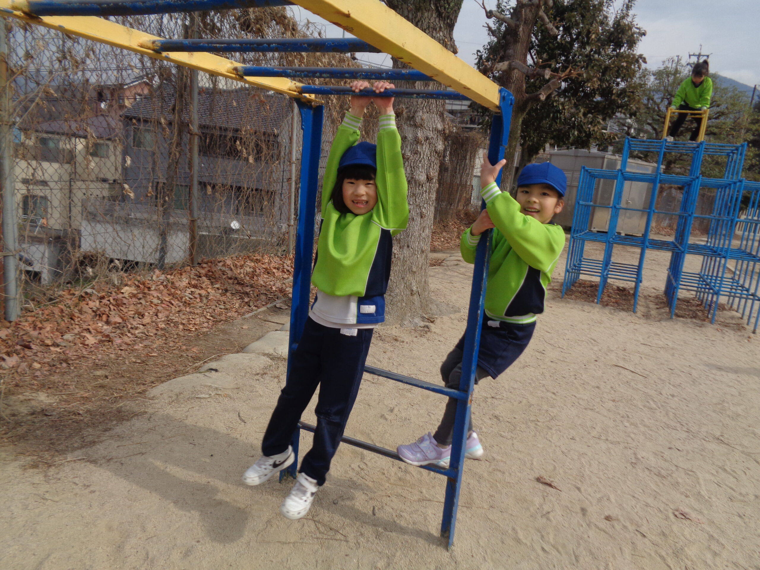 校庭では小学生のお兄さんお姉さんと一緒に遊びました♪