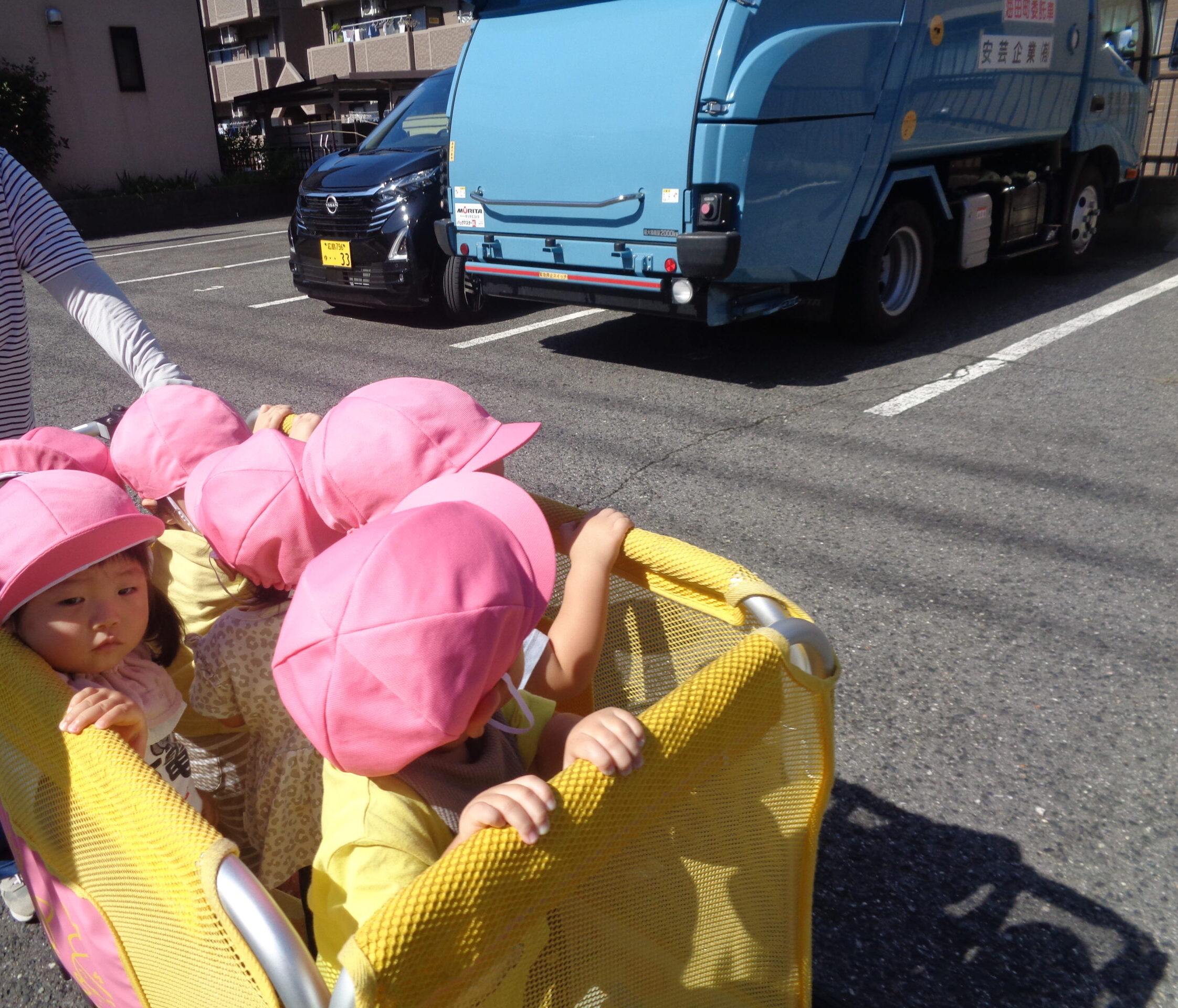 ゴミ収集車を見たり、移りゆく景色を見ながら公園に到着!