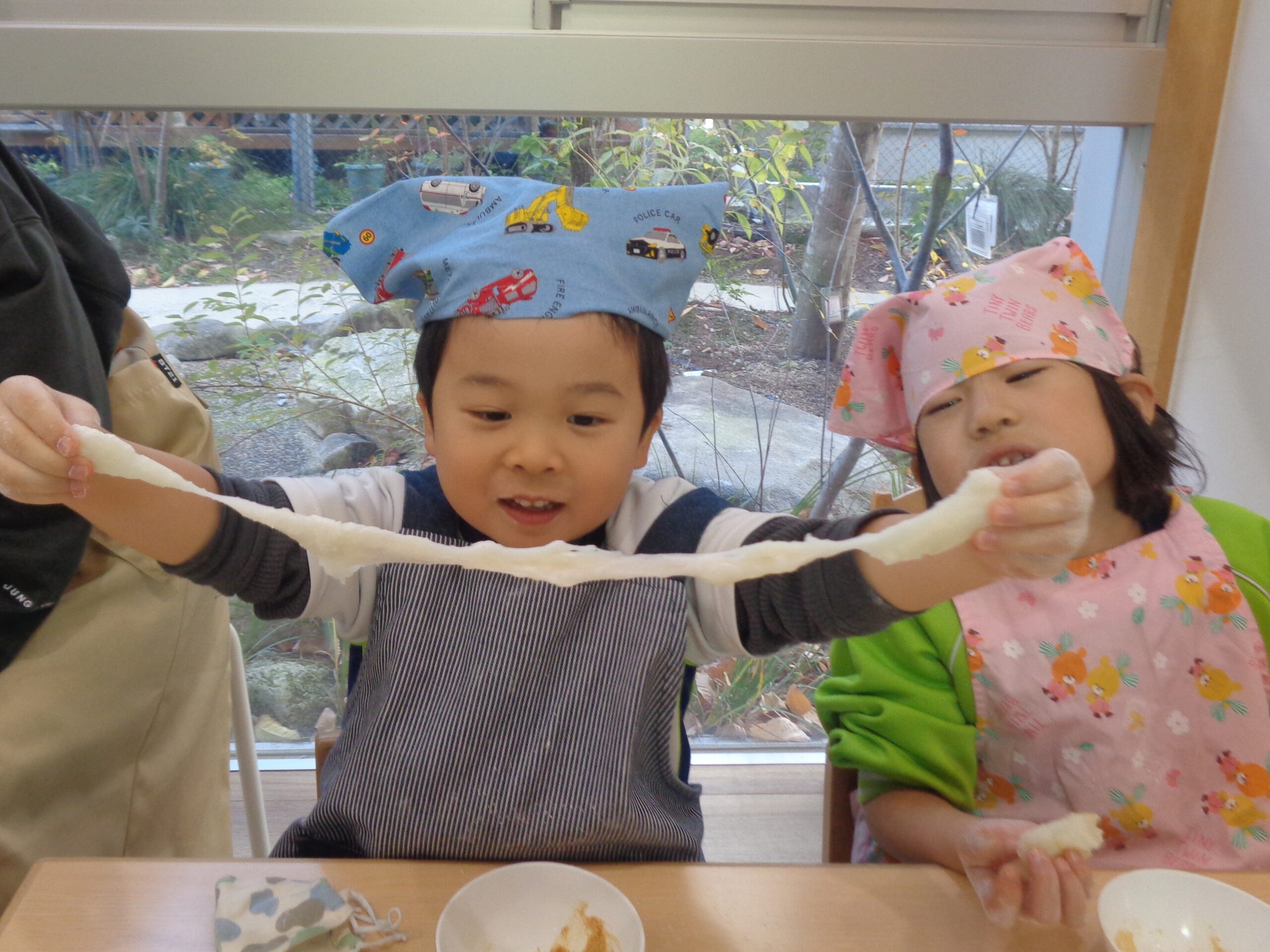 当日の2日前に年長組でもち米を洗い準備をしていました