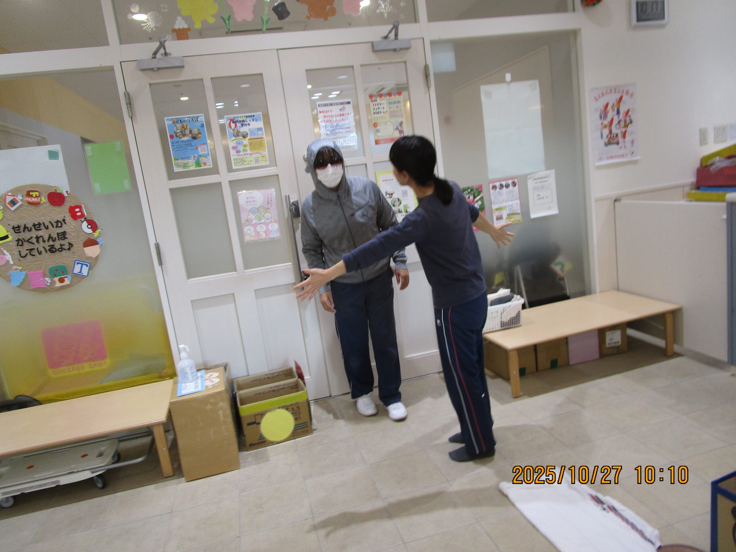 TOP > 「もしもの時の訓練」 ブログ 「もしもの時の訓練」 ※これは、訓練です。 万が一、セキュリティをすり抜けて、 不審者が侵入してきたら… を想定して、訓練をしました。 こどもたちには、 「紙芝居がはじまるよー!!」と声をかけて、 園の外に誘導しました。 安全な場所に集まり、 紙芝居を見ながら、“こんな時、どうする❓”を みんなで考えてみました。 今日は訓練😌 みんな、すぐに先生のところに集まることができたね👏 よくできました🌸 2025.10.27