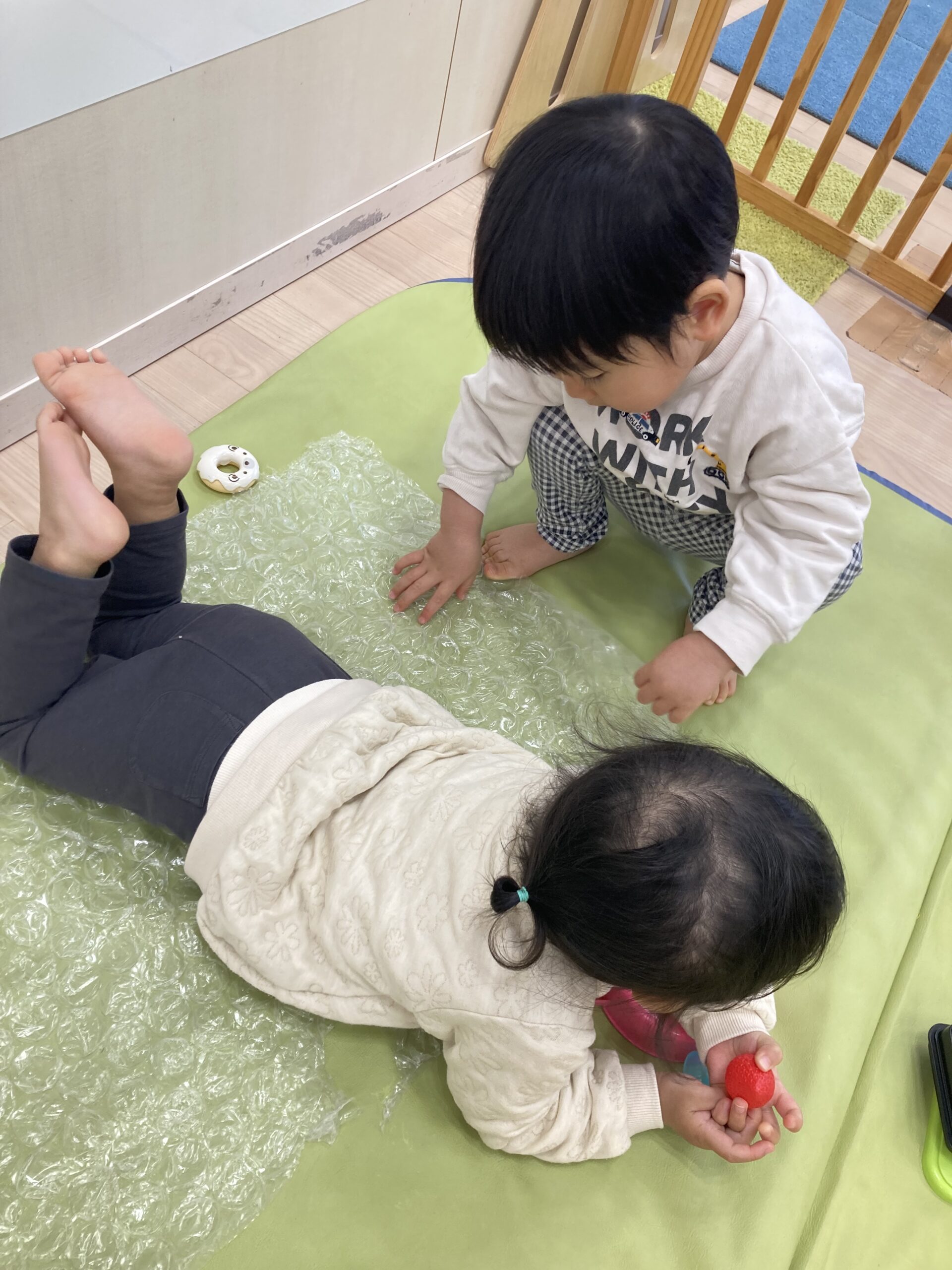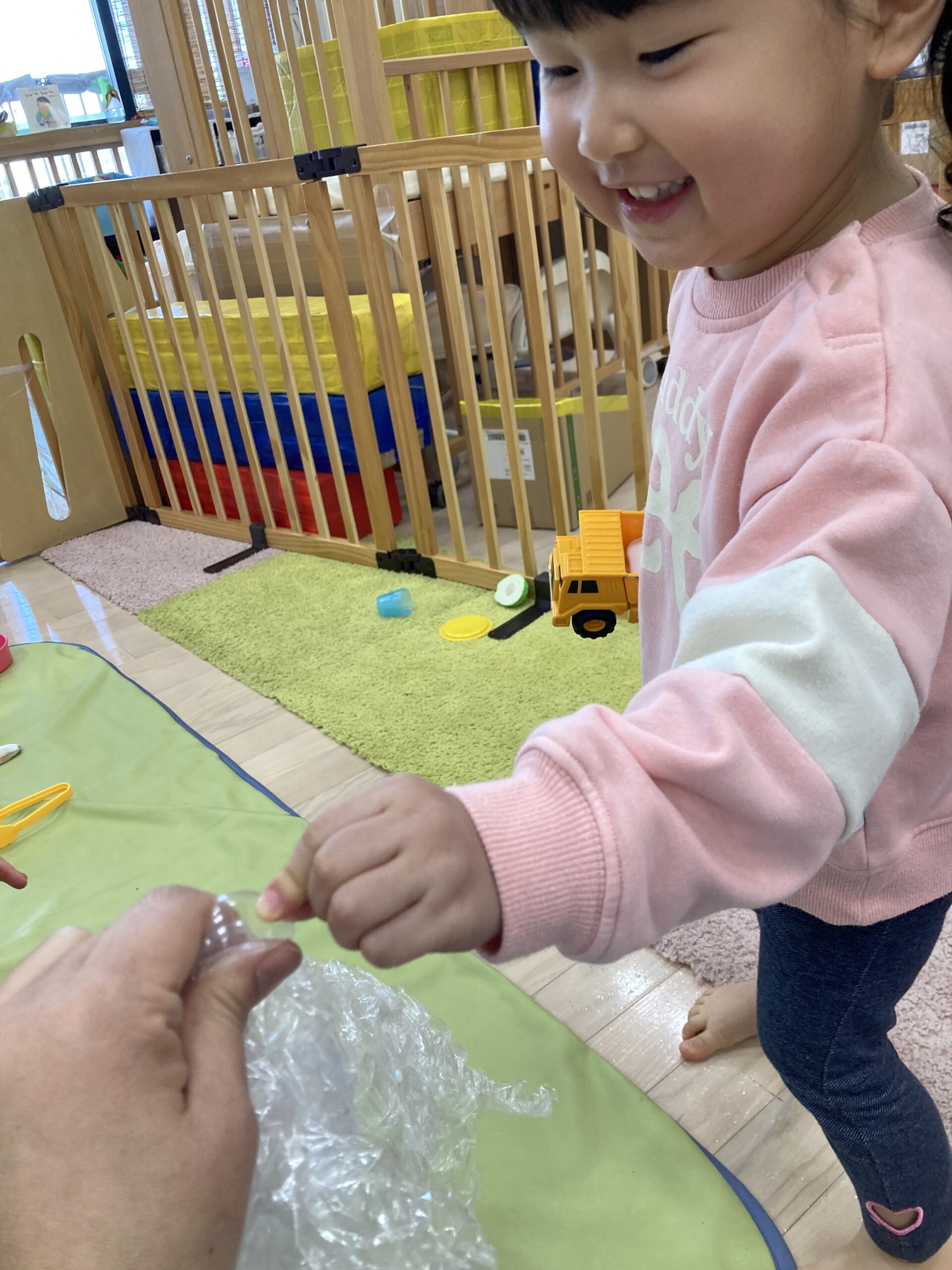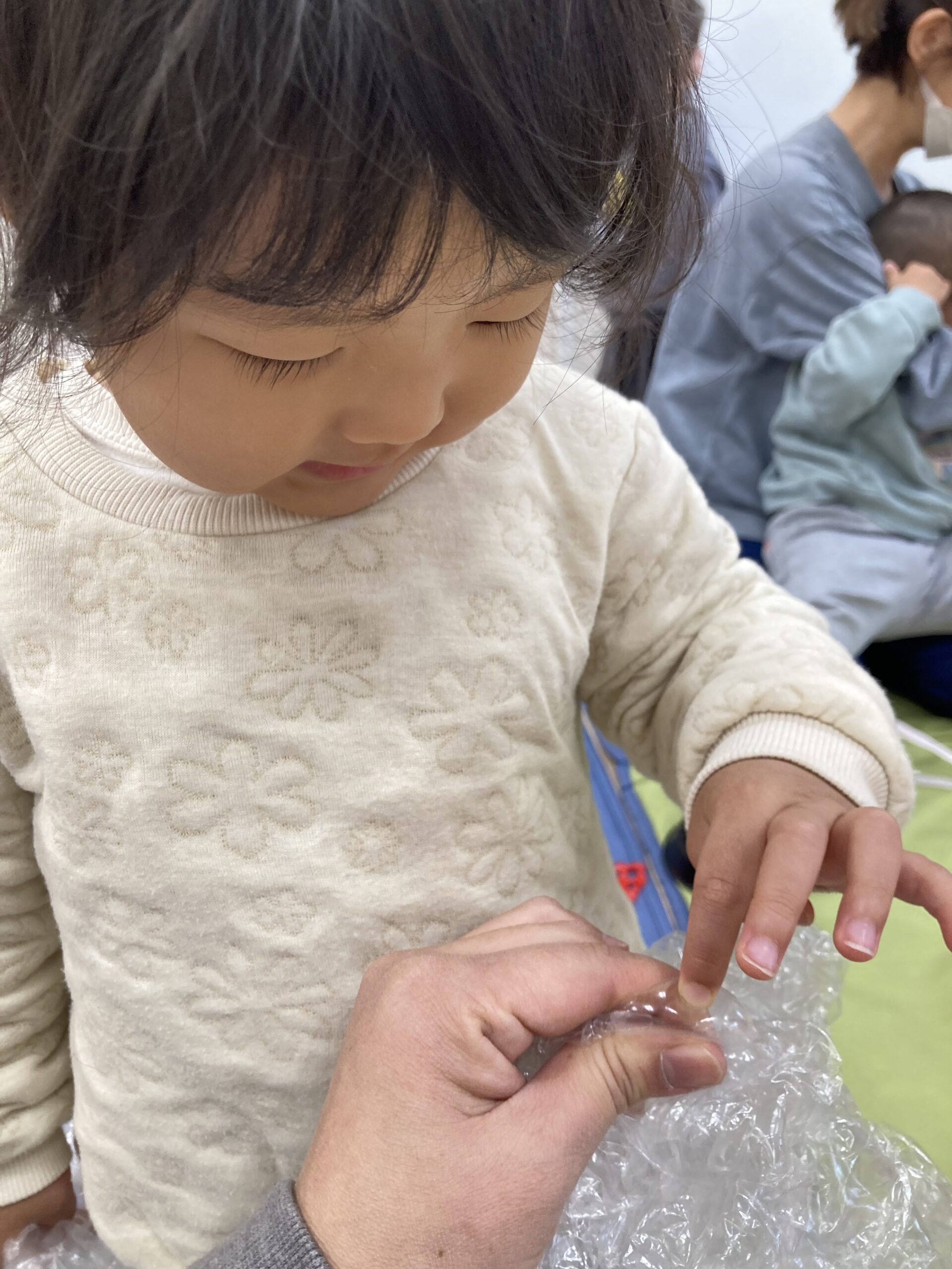 エアークッションやプチプチを触ったりつぶしたりするあそびは