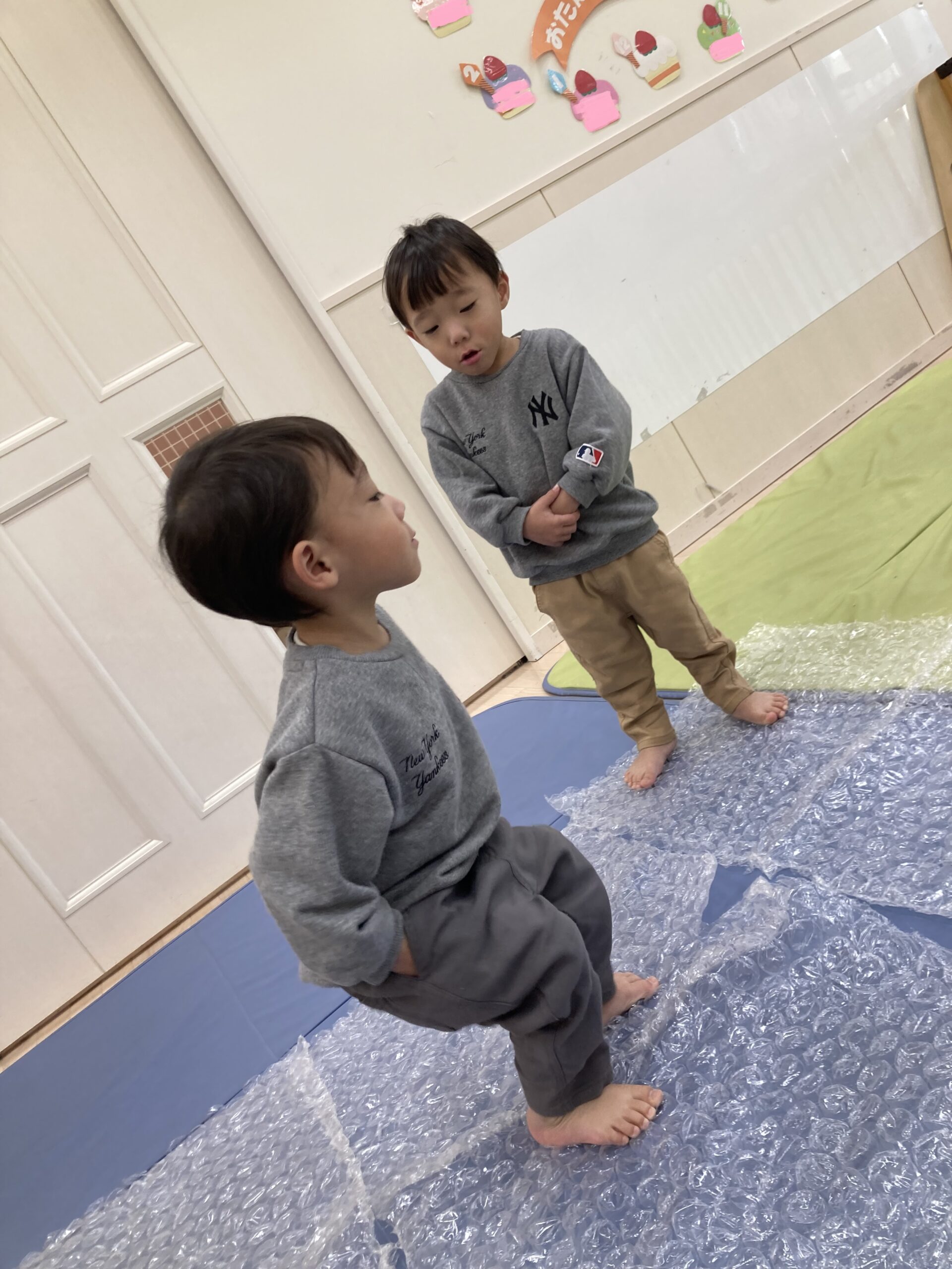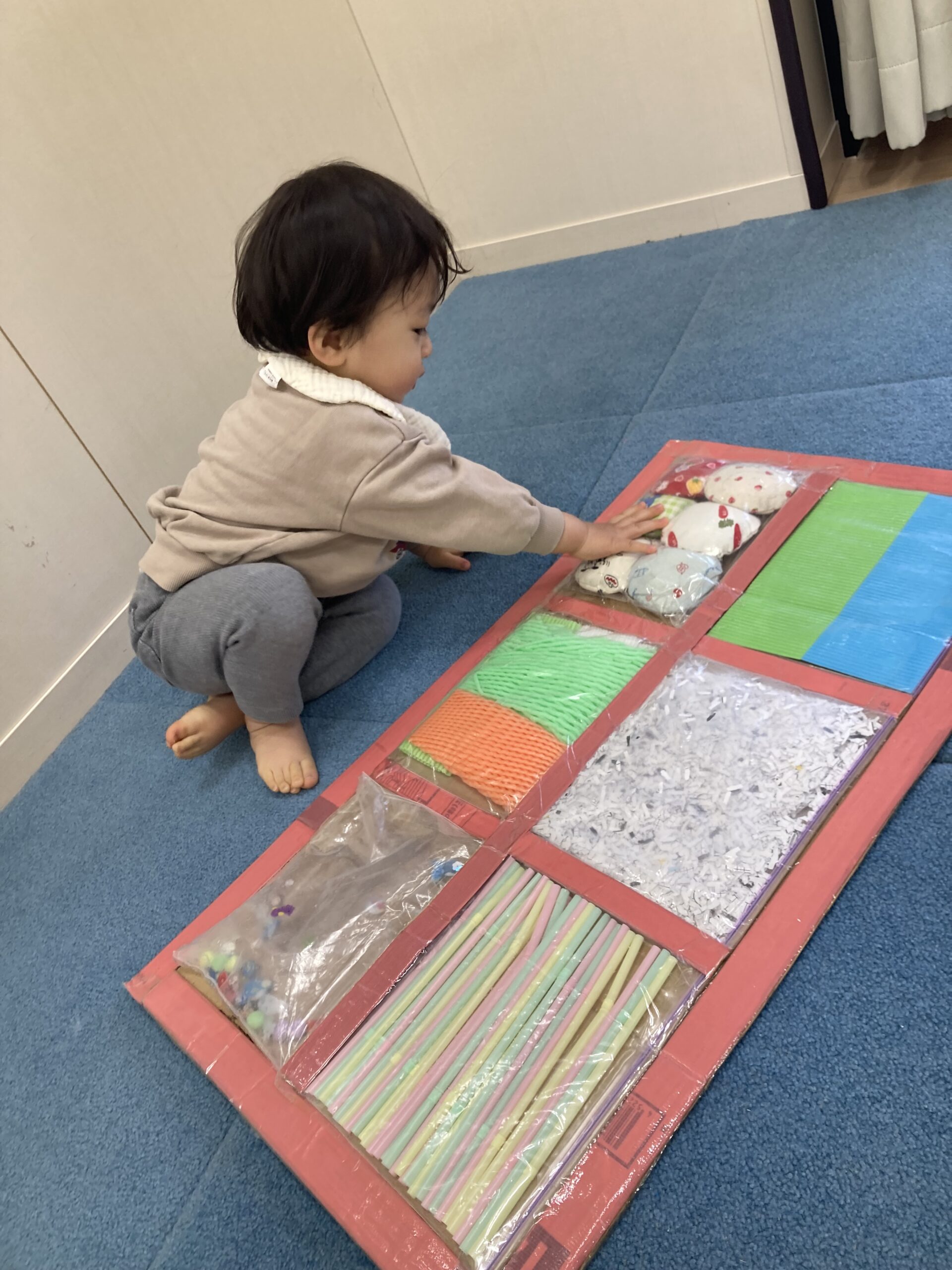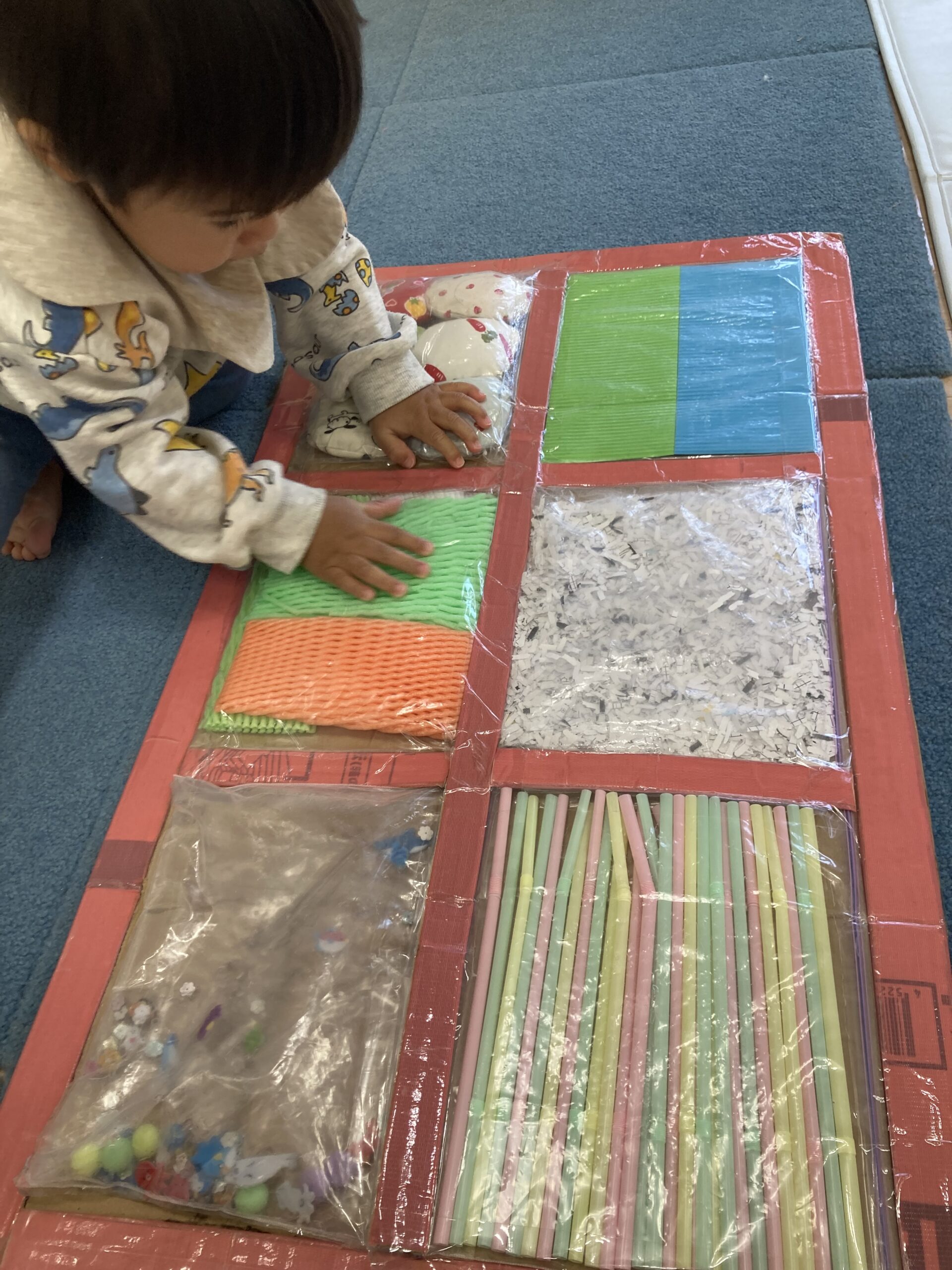エアークッションやプチプチを触ったりつぶしたりするあそびは