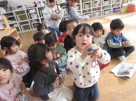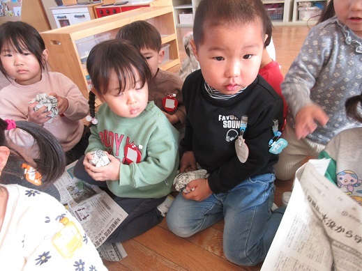 TOP > いちごぐみも おにはーそと!ふくはーうち! ブログ いちごぐみも おにはーそと!ふくはーうち! ちょっと前になりますが、いちごぐみでも節分の行事を楽しみました♡ 新聞豆を作って、 鬼に向かって「おにはーそと!」 先生たちも鬼にへ~んしん!! 鬼玉入れスタート✨ 心の鬼をやっつけた子どもたちでした😊 2026.02.18