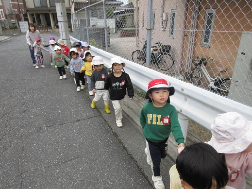 TOP > 初散歩💕 ブログ 初散歩💕 いちご組も初めて園外に出ました🚶 友だちと手をつないで園周りをおさんぽ!! たくさんの発見もしたよ👀 幼稚園にいる友だちにも「お~い!!」 また行こうね♪ 2026.03.02
