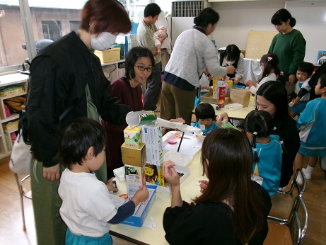 TOP > 参観日 ブログ 参観日 この日は参観日!! 2学期も半ば・・・ 子どもたちの頑張る姿、成長した姿を見てもらいました♪ 年少組「手作り楽器あそび」 年中組「グループでどんぐりタワー」 年長組「教材 めざましあそび」 どのクラスも楽しい時間を過ごせました😄 お忙しい中、参加いただきありがとうございました!! 2025.10.23